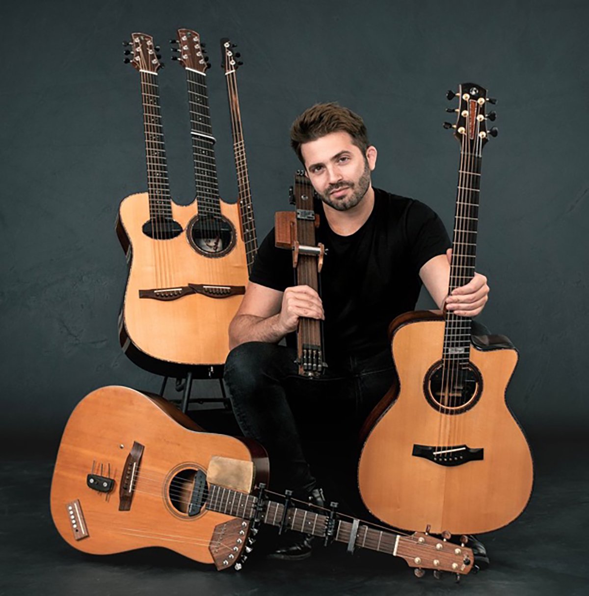 Luca Stricagnoli mit der von ihm entwickelten Reversed Triple Neck Guitar