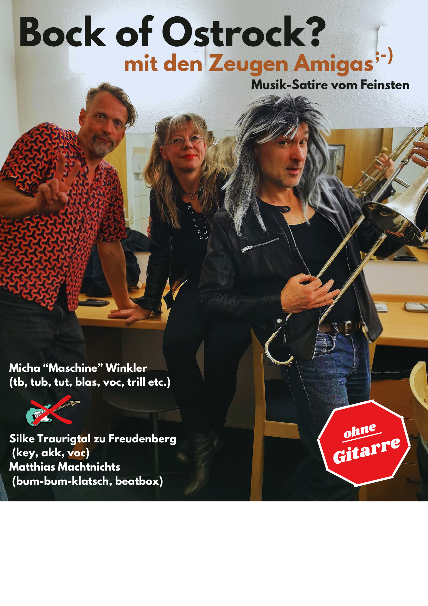 Das anerkannte Vokskunstkollektiv Zeugen Amigas präsentiert Ihnen verjazzte Ostrockhits mit Augenzwinkern, wie Sie sie noch nie gehört haben. Dazu gibt es Geschichten aus dem Hirschbeutel … Mitsingen, Mitswingen und Mitlachen ausdrücklich erwünscht